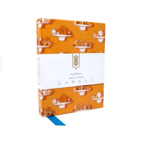 The Sketchbook features an accordion pocket to keep all your inspirations at hand, and you'll always find your way with a plump 7/8' grosgrain ribbon place marker.