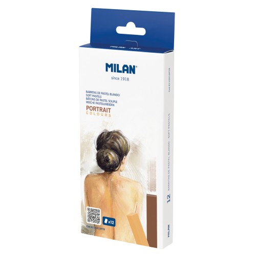 MILAN Art soft pastel sticks in portrait colours to paint, mix, blur and cover large areas of the drawing. Intense and bright colours. High resistance to light. Especially recommended for artists. Use fixative for a good stability and durability on the artwork. Pastel dimensions: 65 mm long x 10 mm wide. Packed in 12 assorted colours.