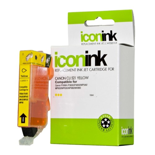 A compatible Canon CLi-521Y ICCLI521Y yellow ink cartridge with 10 mls of ink.