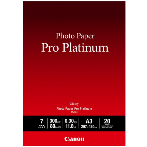 • Canon PT101-A3-20 Pro Platinum Super High Glossy 300 gsm 20 Sheets A3