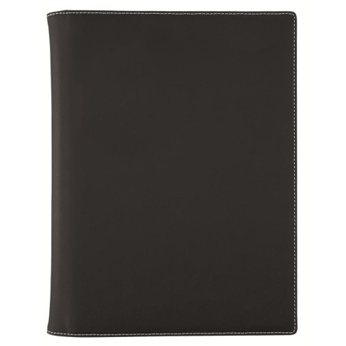 The compact A5 sized compendium is ideal for the professional on the go. It includes: Document slot, Business card holder, White contrast stitching, pen loop and ruled notepad.
