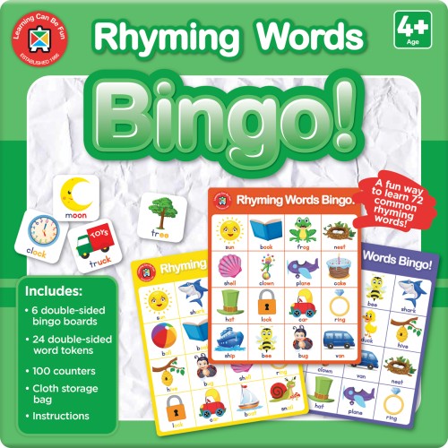 Recognising rhyming words is a basic level of phonetic awareness which is crucial in helping young children to develop early literacy skills while learning to read. This fun game features 72 common rhyming words to help young learners develop sound and word recognition through recognising rhyming words. Colourful, engaging and phonetically correct illustrations will ensure children love playing bingo as they develop their rhyming skills!