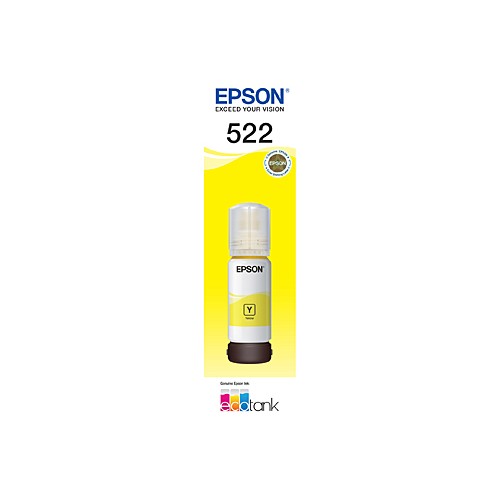 A genuine Epson T522 Yellow EcoTank ink bottle.