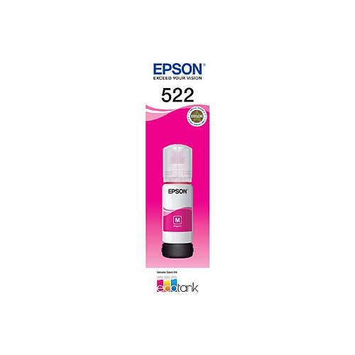 A genuine Epson T522 Magenta EcoTank ink bottle.