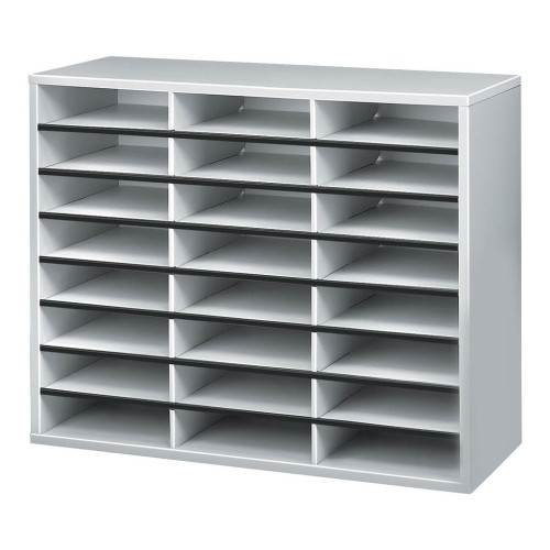 The Fellowes Literature Sorter 24 Compartment Grey is a 24 compartment storage unit for literature or mail.