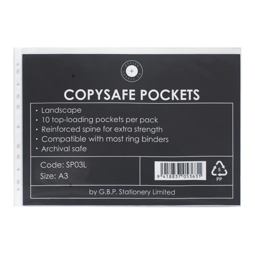 OSC Copysafe Pockets A3 Landscape Pack of 10 pockets.
