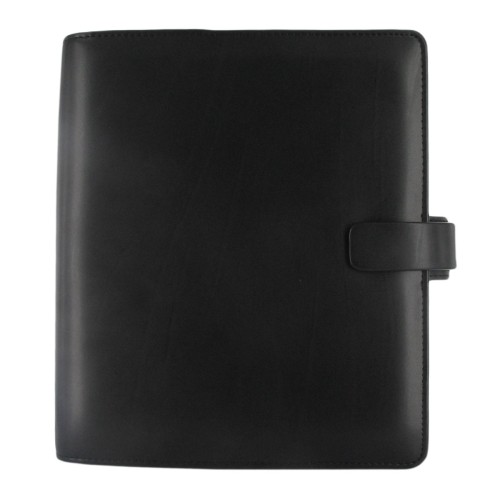 With clean lines and a sleek silhouette, Metropol remains a favourite. A smart and practical A5 organiser for everyday use. A5 size: Width 205mm, Height 235mm, Depth 40mm. Faux-leather with closure strap. Ring mech: 30mm.Contents: undated fill, ruler/page marker, to do, contacts, indices, notepaper. Please note contents may vary to those listed or shown in product images. Right Hand Details: one notepad pocket, one PU pen loop. Left Hand Details: ten card pockets, one vertical slip pocket, one PU pen loop.