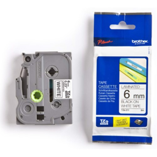 • Brother TZE211 6mm Black on White Label Tape - Genuine