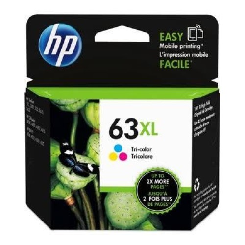 A genuine HP number 63XL high yield tri-colour ink cartridge.