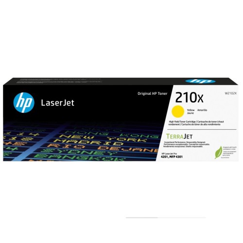 A genuine HP 210X Yellow Toner W2102X Hi-Yield toner.