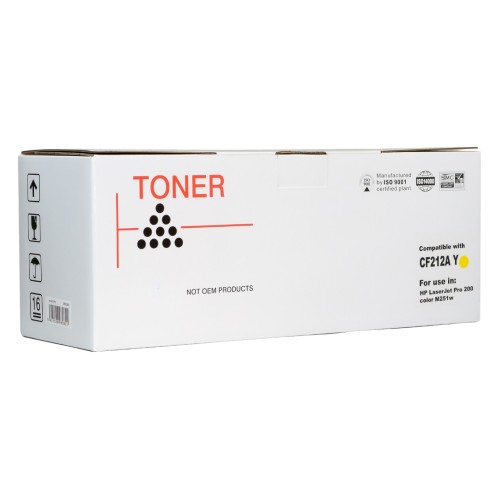 A compatible HP 131A - CF212A - ICF212A yellow laser toner cartridge.