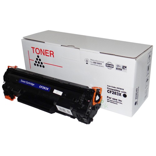 A compatible HP CF283X - ICF283X AS-CF283X and Canon CART337 high yield black laser toner cartridge.