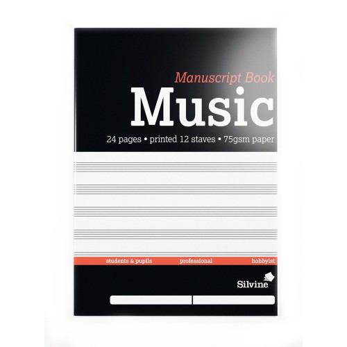 • Silvine Music Manuscript Book A4 24 Pages 12 Stave