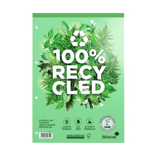 Silvine 100% Recycled Refill Pad A4 120 Pages Ruled with Margin