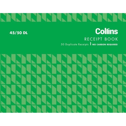 Collins Cash Receipt 45/50DL Duplicate No Carbon Required