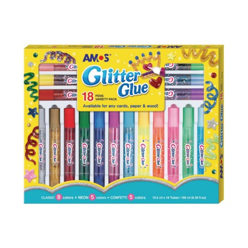 Amos Glitter Glue Pack 18 18x10.5ml