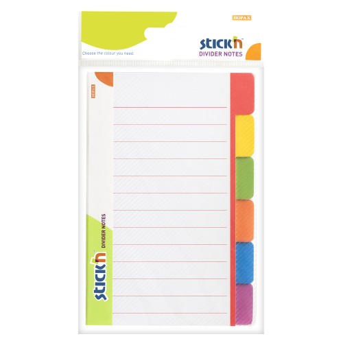 Stick'n Magic Divider Notes Neon 6 Colours 60 Sheets Lined 148x98mm