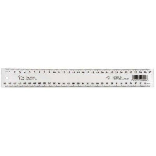 This plastic ruler is a handy school or work essential that lets you draw straight rulings/lines. It is made of Styrene and features graduations in cm and mm for quick and easy measuring. With a clear design, you can ensure precise, clean lines. 300mm. Made in New Zealand.