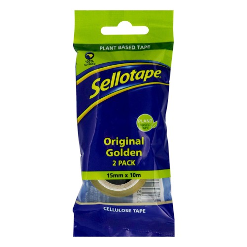 Sellotape Original Golden Cellulose Tape is a versatile, general-purpose tape made from plant-based materials - it consists of cellophane derived from wood pulp and an adhesive made from natural gum resin, making the tape biodegradable.