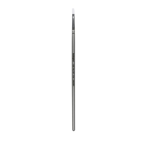 •A flat paint brush with taklon bristles and a metallic silver handle