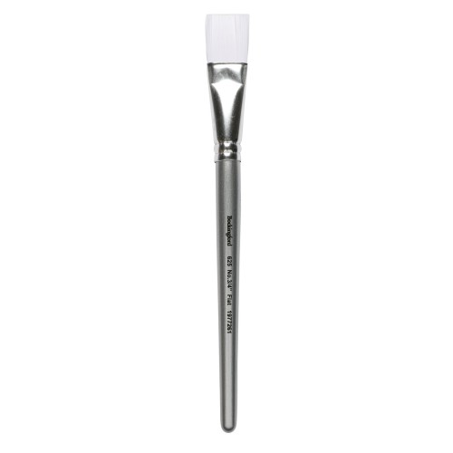 •A flat paint brush with taklon bristles and a metallic silver handle