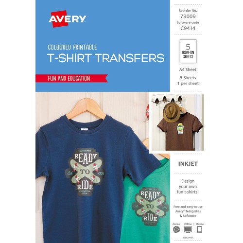Create original clothing and fabric designs to set you apart from the crowd with Avery Coloured T-Shirt Transfers. Ideal for clothing and textile decoration, these high-quality, easy to use iron-on transfers are perfect for parties, seasonal celebrations, great for gifts and company events to give your clothing a personalised look. Use with dark coloured, cotton fabrics such as T-shirts, sweatshirts, baby clothes, aprons, bags, tea towels and cushion covers. Our transfer sheets feed easily through most inkjet printers and the crisply printed image stays bright even after washing.