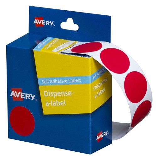 Avery Label Dispenser DMC24R Red Round 24mm 500 Pack