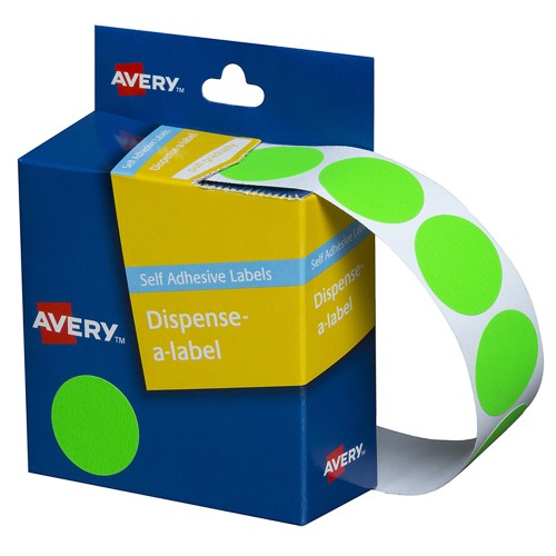 Avery Label Dispenser DMC24FG Green Fluoro Round 24mm 350 Pack