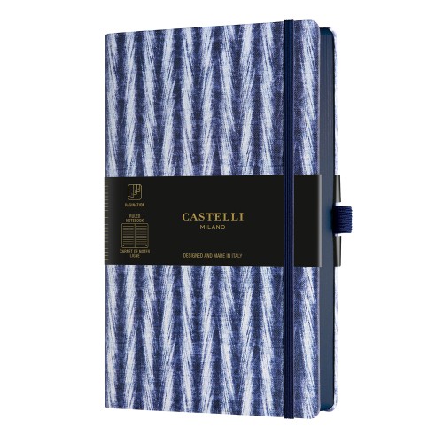 The Shibori notebook from Castelli, powerful blue patterns channel the ancient Shibori technique of harmony and reflection with added Italian flair.