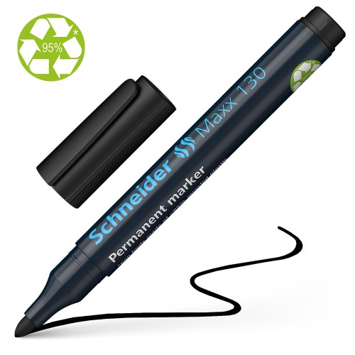 Maxx 130 Permanent marker with bullet tip for writing on cardboard, paper, plastic, glass, metal, wood and almost all other materials.
