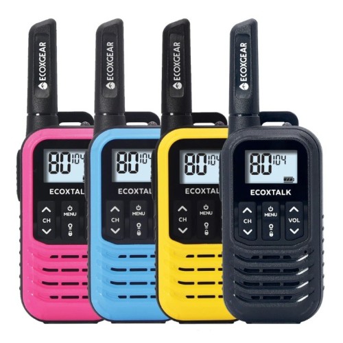 4-pack ECOXGEAR ECOXTALK EXG50 UHF CB Handheld Radios (Black, Blue, Pink, and Yellow)