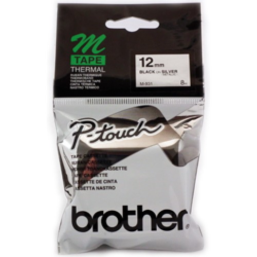 Brother M931 12mm Black on Silver Label Tape - Genuine