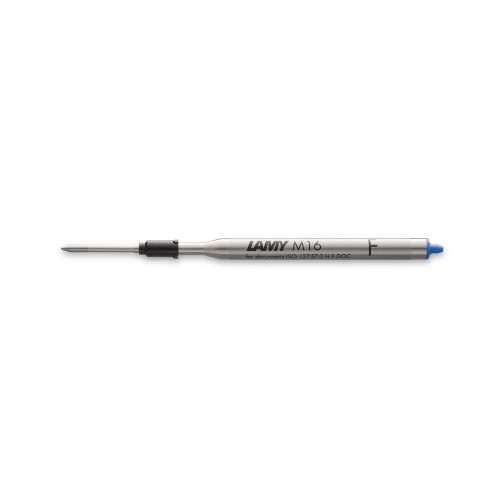 The LAMY M 16 giant ballpoint refill is available in black, blue and red waterproof ink in sizes F, M and B; Green in M only. Writing capacity varies according line size from approximately 4,500 to 8,000 metres.