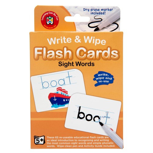 These 65 re-useable educational flash cards are an ideal introduction to recognising and writing the most common sight words and simple phonic words. Wipe-clean pen and Activity Guide included.