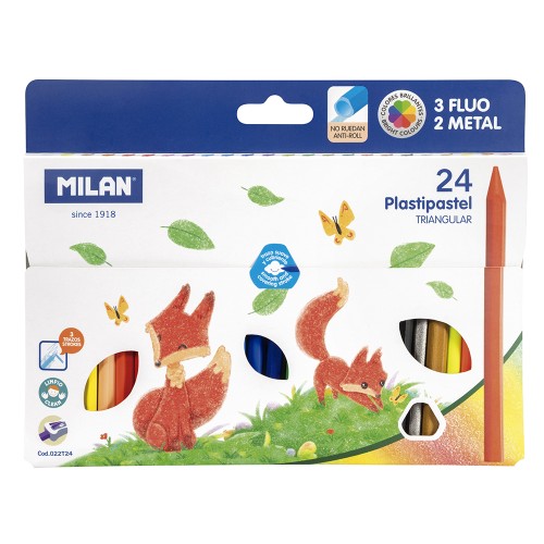 • Milan Plastipastel Triangular Pack 24 Assorted Colours