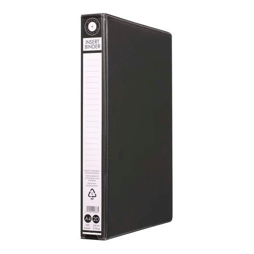 This Insert Binder features 2 D-rings, 25mm diameter in capacity that holds up to 200 sheets of office paper.