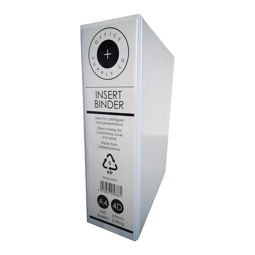This Insert Binder features 4 D-rings (65 mm diameter) providing a capacity of 350 sheets of office paper.