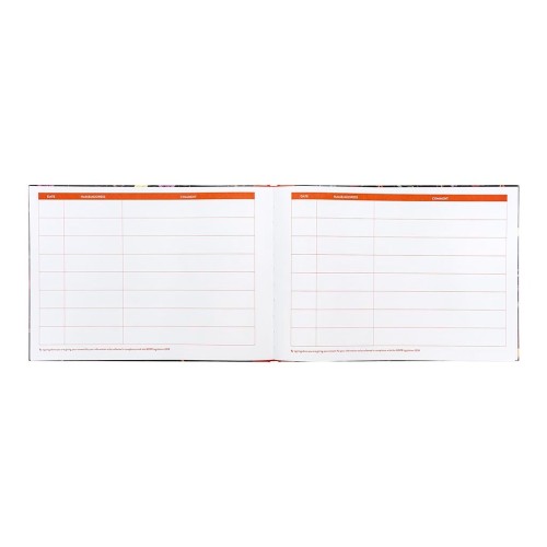 Bloom visitors book designed to track guest information. It allows you to record the date, name, address, and comments from guests with space for 768 entries and comes with a durable hardback cover.